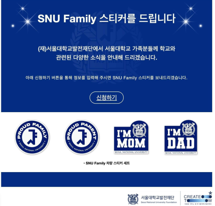 서울대 발전재단은 스티커 신청 시 부모와 자녀의 이름, 입학 연도, 학과를 기재하도록 했습니다.