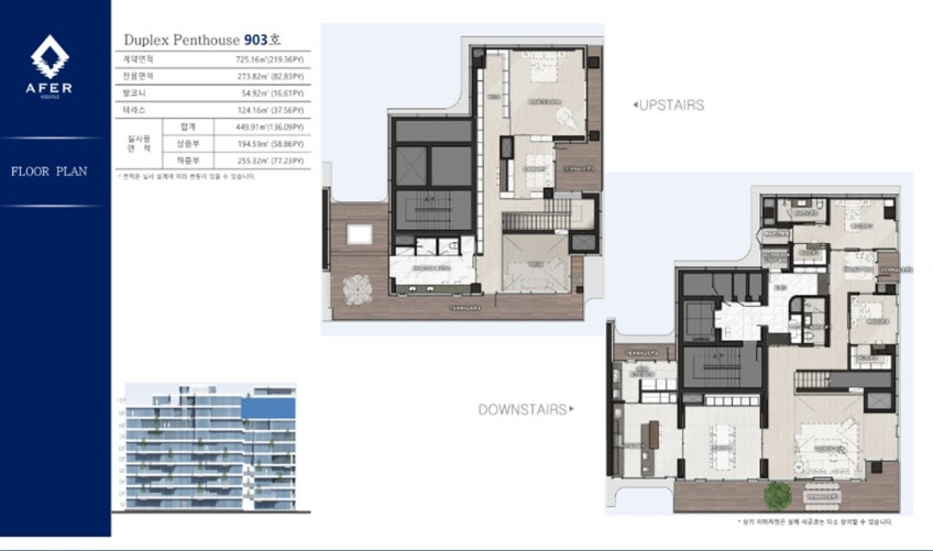 - 아페르한강은 지하 6층~지상 9층 규모로, 전용 176~265㎡ 단 24가구만으로 구성되어 있습니다.
