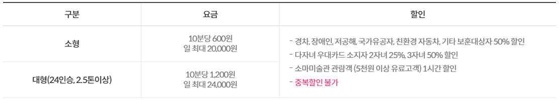 주차 비용은 아래와 같으며, 주차장 한 쪽에는 전기차 충전소가 있는 곳도 있어, 충전을 목적으로 올림픽공원에 오는 차들도 있지요.