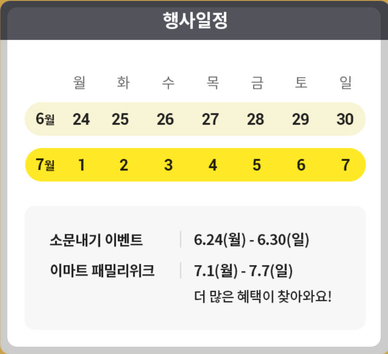 다음 달 1일부터 7일까지 '이마트 패밀리 위크'를 진행한다고 27일 발표했습니다.